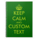 Apple green Keep Calm spiral notebook | Personalised text. Cute vintage gift idea for school, home and office. Personalizable text and background colour. Create your own Keep calm and carry on slogan parody. KeepCalm theme. Make one for teachers.