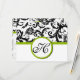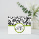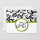 Vintage Modern Black and White Floral Damask Patterns with Apple Green Trim Wedding Invitations. Perfect for Rococo Baroque, Mediaeval Renaissance, Art Deco Art Nouveau, Roaring 20s Gatsby, Victorian Weddings or Elegant Farmhouse Wedding Themes Venues.