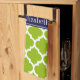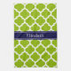 Apple Green and White Moroccan Quatrefoil Trellis Pattern #5, Navy Blue Ribbon Name Monogram Label