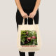 The printing came out very well, better than I had anticipated. The natural color fabric is sturdy with strong seams and comfortable handles. This tote fits easily over my shoulder. As it is filled, the bottom flattens out--very cool! I would buy this product again. This grocery tote holds a lot of groceries! The image quality was very good. The colors were a little darker than I had expected. The darkness may have been due to printing on a natural color fabric rather than on white. The cat design is attractively centered on the tote. The spirit of the design is very lively, just as it appears on the Zazzle website.