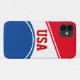 This Apple iPhone 11 case is shown in a red ,white and blue design with USA text.