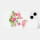 Apple iPhone 14 case shown in a tropical flamingo print design.