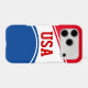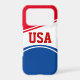 This Apple iPhone 17 Pro case is shown in a red, white and blue design with USA text.