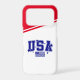 This Apple iPhone 17 Pro case is shown in a red, white and blue design with USA print.
