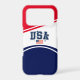 This Apple iPhone 17 Pro case is shown in a red, white and blue design with USA print.