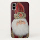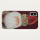 iPhone X case with an image of St. Nick with his jewelled head piece and outfit. He has a long white beard, and the background is dark cranberry.