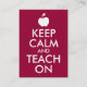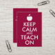Red white customisable apple shape "Keep Calm and Teach On" parody design for teachers based on the classic poster. You can delete the contact information on back or change the font size and style.
