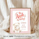 Apple of Eye Gingham Baby Shower Cards and Gifts Sign. Available digitally and printed. An artsy set typography for The Apple of our Eye, a cute teddy bear holding a card and sitting on a gift and a pink gingham background for this design. Easily personalise the rest of the words as required.