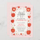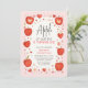 Fall themed birthday "Apple of Our Eye" featuring cute apples, love hearts and floral elements on a pink and white background, giving it a cute and modern look. You can easily personalise this with your details.