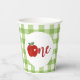 The Apple of our Eye is turning one! Apple themed first birthday party cups.