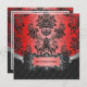 Apple Red & Black Damask Wedding Invitations---match the RSVP cards found at the bottom of this page. Each invitation features an elegant, chandelier like damask print in black and deep apple red at the top with a luxury pillow print, also in black at the bottom. The top and bottom half are seperated by a silver and black ornamental band for added flair. The band has a template that allows the groom & bride's first names to be printed on top of it. These red chandier/black damask wedding invitations are set to high quality basic card stock; however, you can change the stock to linen, felt (embossed), recycled, and several metallic shades if you would like under number 2 (choose your style, size & paper type) below the orange add to cart button. A list of the additional costs for a fancier card stock are displayed also under that option. Each invitation comes with a fitted white envelope.