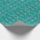 Wrapping paper featuring elegant pattern in teal and mint green, stylised leaves and whimsical striped curves, bohemian / ethnic / hippie / vintage style, hand drawn pastel texture.