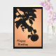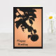 This simple, elegant birthday card features an apple hanging from a branch against a brilliant orange and yellow sunset sky. The stark silhouette creates an oriental motif.