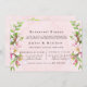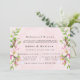 Design features a printed coloured with floral element in shades of blush pink over greenery leaves branch wreath and apple tree blossoms on a light pink watercolor background.. Great for your wedding celebrations!