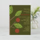 Apple tree fall wedding custom bridal shower invitation, featuring a stylised apple tree with red fruit. Olive green, red, green.