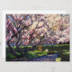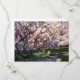 Beautiful scene features white blossoms on large blooming apple trees in Spring. Illustration from an original painting by Daniel Fishback.