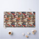 This unique desk mat features a pattern of old, dusty stacked books. Among the groups of red apples. Perfect for a library desk or teacher's desk.