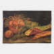 Still Life with Apples, Meat and a Roll by Vincent van Gogh is a vintage fine art post impressionism painting featuring a variety of foods (fruits, vegetables, breads, meats) sitting on the kitchen table ready for the chef to cook with.