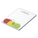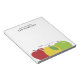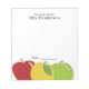 Teacher's personalised notepad accented with a colourful trio of apples. Ample writing space and editable text.
