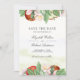 Elegant apple theme save the date featuring beautiful apples and flowers.