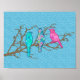 Applique Birds on a Branch, Sky Blue Multi Poster
