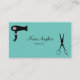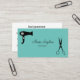 Hairstylist or Hairdresser appointment business cards reminder template created in a trendy two side design with a blow dryer and cutting shears and your name featured on the front and your client appointment reminder featured on the back.