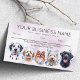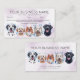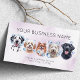 A charming appointment reminder for your clients with sweet dogs with bubble and soapy foam on their head. Showing the client how their sweet pet will be pampered and treated like royalties at your pet grooming business. Black labrador, poodle, old english cheepdog, pomeranian and a dalmitian. Avalible with background in different watercolors hues, and simple classic plain white.