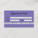 A purple blue appointment/business card with space on the back for appointments. The front has your logo and your company name and address. There are 4 lines for you to personalise. Great for hair and nail salons, but can also be used for doctors and dentists.