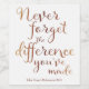 A beautiful retirement or appreciation wine label. Perfect for a retirement party or thank you gift. This great "never forget the difference you've made" saying is featured in a copper/gold coloured typography. Can be personalised with a name and date - or other message.
