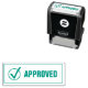 Approved with check mark sign self-inking stamp. Available in coloured ink like red, green, blue etc. Custom rubber stamps for corporate business, office, company, work, school, commercial agency, jobs, home etc.