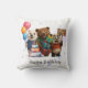 Celebrate birthdays with the adorable Happy Birthday Bear Trio Throw Pillow (16" x 16"), perfect for kids, friends, and bear lovers alike. This double-sided pillow features a charming front design of a polar bear holding balloons, a brown bear with colourful gifts, and a panda with an “I Love You” sign, all surrounding a cheerful birthday cake. The back showcases a heartwarming “Make a Wish” message with a little bear, balloons, and cake—adding a magical touch to any celebration.