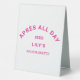 Après All Day, hot pink bachelorette ski party crest, table top sign. Personalise with the year of your ski trip / party and brides name. Perfect for an Après Ski theme bachelorette party. Designed to match our Après All Day Hot Pink Bachelorette Collection.
