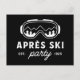 Apres ski party mountain girls trip drinks funny skiing winter cabin lodge chalet night black and white chic aesthetic sport theme gift small print card invitation invite postcard.