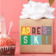 Modern ski-themed après-ski design, in colourful colour blocks and coloured letters. Alpine ski opening, ski resort, ski home design. Wonderful winter sports fun gift for a skier in your circle of friends, co-workers, or family. Retro skiers artwork design. Skiers skiing ski home decor, Ski team, ski coach gift.