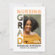 Stylish personalized graduation announcement for NURSING Graduate, with customizable photo, name, year, college and message on the back. Designed with GRAD photo mask detail and in nurse grad color of apricot. Matching stationery available.