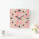 Apricot peach pink floral striped pattern square wall clock