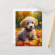 Apricot Poodle Puppy in Fall Leaves Postcard