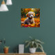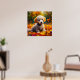 Cute Apricot poodle puppy dog playing in yellow fall leaves art.