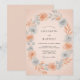 This design features a soft apricot backdrop adorned with a delicate arrangement of watercolor roses and peonies. The muted grey-blue foliage and silver dollar eucalyptus leaves create a sophisticated and romantic atmosphere. The palette of warm peach and dusty blue is perfect for a refined springtime event.