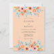 This design features a soft apricot backdrop adorned with delicate watercolor florals in shades of peach and blush pink. Ethereal sky blue foliage accents the romantic clusters of ranunculus and roses, creating a whimsical and airy aesthetic. The artistic rendering of the botanical elements provides a dreamy, hand-painted feel perfect for a romantic spring or summer theme.