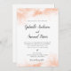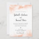 This stylish wedding invitation features a popular calligraphy for the names of the bride and groom. This modern invite is accented with a apricot coloured watercolor along the top and bottom edge.