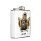 The flask itself is fine. It’s a cheap flask, obviously bought in bulk, however am prepared to overlook that. Given that it is a personalized item, I would have liked to have seen gift boxing instead of the generic packaging. Terrible printing, and/or quality. It’s a cheap, tacky vinyl. It is not cut straight and is also applied in a way that it is overhanging the bottom, causing the glue to catch on items and it will eventually roll and tear, damaging the wrap.
