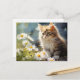 Digital watercolor postcard of bright vibrant daisy flowers for those born in April with an adorable fluffy kitten. Send your loved one a special birth month flower postcard!