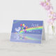 A 3d April birthstone birthday card with a diamond heart, balloons and a rainbow.