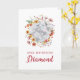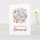 Sparkle and shine for April birthdays with our card featuring the brilliance of the diamond birthstone nestled within a wreath of delicate wildflowers. This card is a tribute to the timeless beauty and strength symbolised by the diamond. A perfect choice for those celebrating an April birthday, combining the everlasting allure of diamonds with heartfelt birthday wishes.
