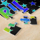 This fun, lively, birthday-themed jigsaw puzzle design features the message "HAPPY BIRTHDAY, APRIL" with the characters having a colourful rainbow spectrum inspired gradient pattern, in addition to a vibrant field of stars background pattern. A colourful puzzle like this might be a fun way to send birthday wishes to somebody named April. [~Z0000468]