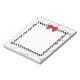 5.5” x 6” white notepad to match our “April in Paris” invitation and envelope with an image of a white square with a black and white checkered border, a pretty red bow, and a few ladybugs on a washed out image of black Eiffel Towers on white. See the entire Cancan Notepad collection in the PARTY FAVORS section.