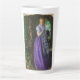 This design features art by the English painter Arthur Hughes (1832–1915). This is perhaps Hughes' best known work and one of the most popular of all Pre-Raphaelite paintings. It shows a beautiful woman standing in a ruined building. She is stunningly beautiful and is wearing a long purple dress with a violet coloured scarf around her neck. She appears to be sad and pensive. Indeed, the woman is looking down at fallen blossoms, perhaps suggesting the end of spring, and of young love. There is ivy growing up the stone wall beside her. When the painting was first exhibited at the Royal Academy in 1856, the accompanying catalogue contained a quotation from one of the songs in Tennyson's "The Miller's Daughter", in which the young lovers fear the passing of their love: "Love is hurt with jar and fret, Love is made a sweet regret; Eyes with idle tears are wet, Idle habits link us yet. What is love? for we forget: Ah, no! no!"