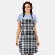 This apron is shown as is in a black, grey and white coloured gingham print.