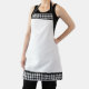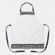 This apron is shown as is in a black, grey and white coloured gingham print.